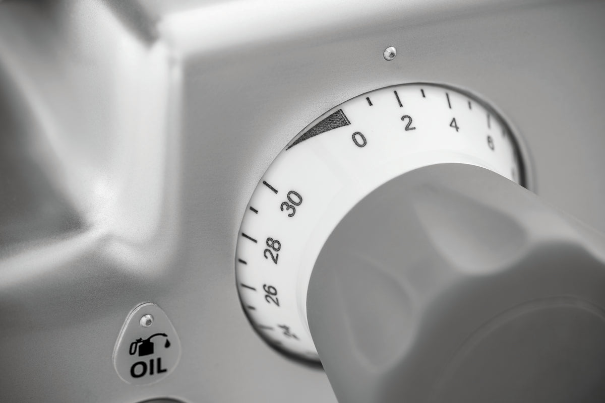 Leistungsstark und wartungsarm – Getriebe-Aufschnittmaschine für den anspruchsvollen Einsatz in Großküchen- und Metzgereibetrieben. Ausgelegt für das Schneiden von Wurst und Käse.