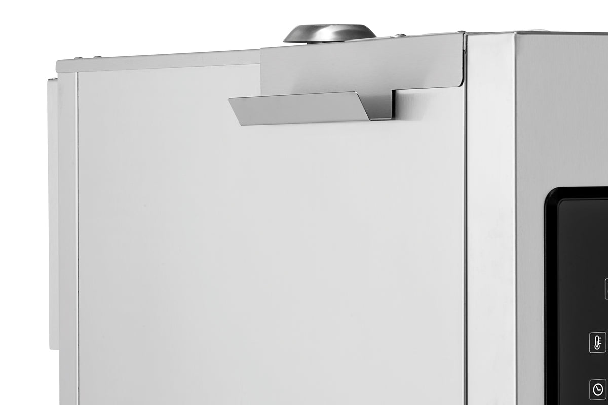 Alles muss seine Ordnung haben – denn, wenn alles an seinem Platz ist, findet sich jeder in der Küche gut zurecht und Arbeitsabläufe werden optimiert. Mit nur einem Handgriff lässt sich der Hordenwagen-Griff zum Kombidämpfer Gigasteam 20110DRS aus der Halterung entnehmen.